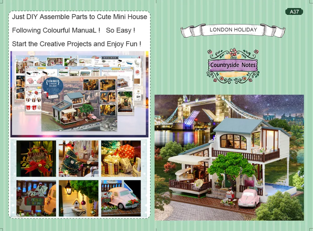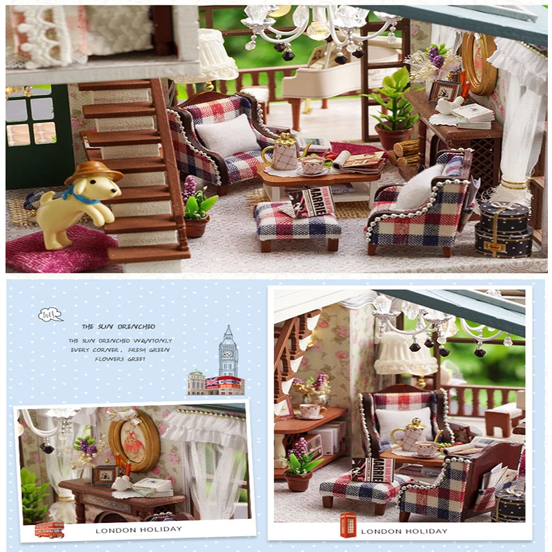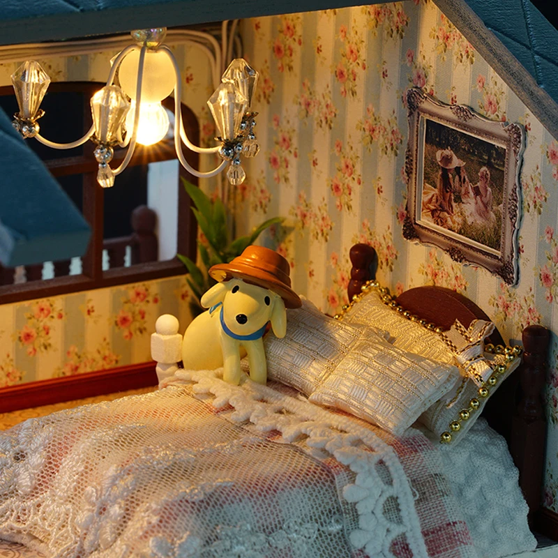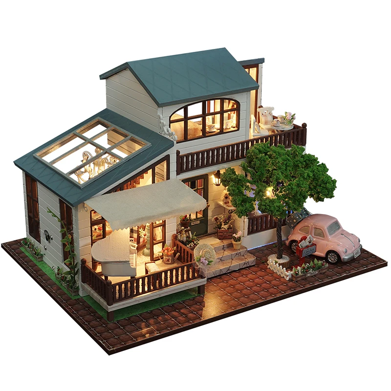 Cutebee DIY House Miniature with Furniture LED Music Dust Cover Model Building Blocks Toys for Children Casa De Boneca : Click here
