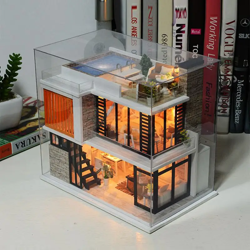 Special Promo Doll House Diy Miniature Wooden Miniaturas Dollhouse Furniture Swimming Pool Building villa Kits To