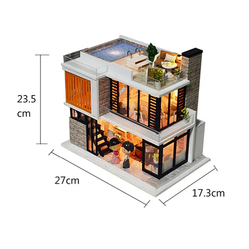 Get a 24% discount for Doll House Diy Miniature Wooden Miniaturas Dollhouse Furniture Swimming Pool Building villa Kits To